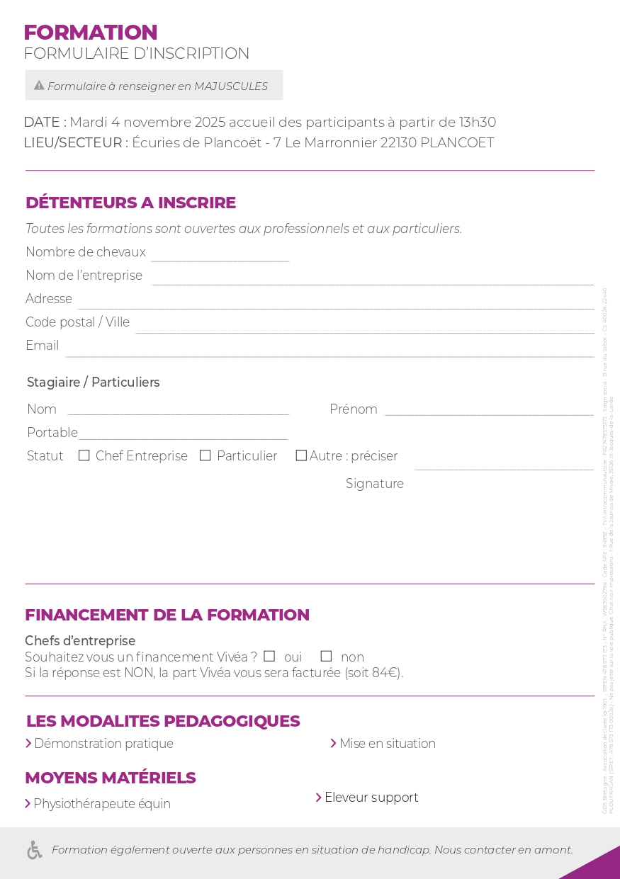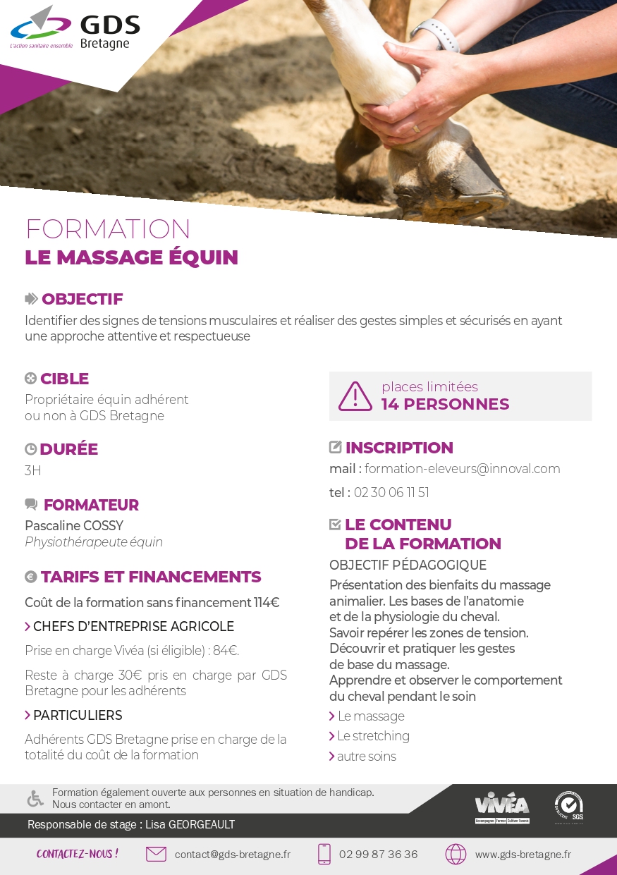 Formation GDS Bretagne : Le massage équin le 4 novembre à Plancoët